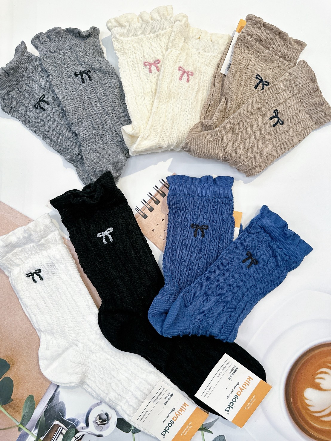 韓國製造~襪口花邊蝴蝶結 二分之一襪