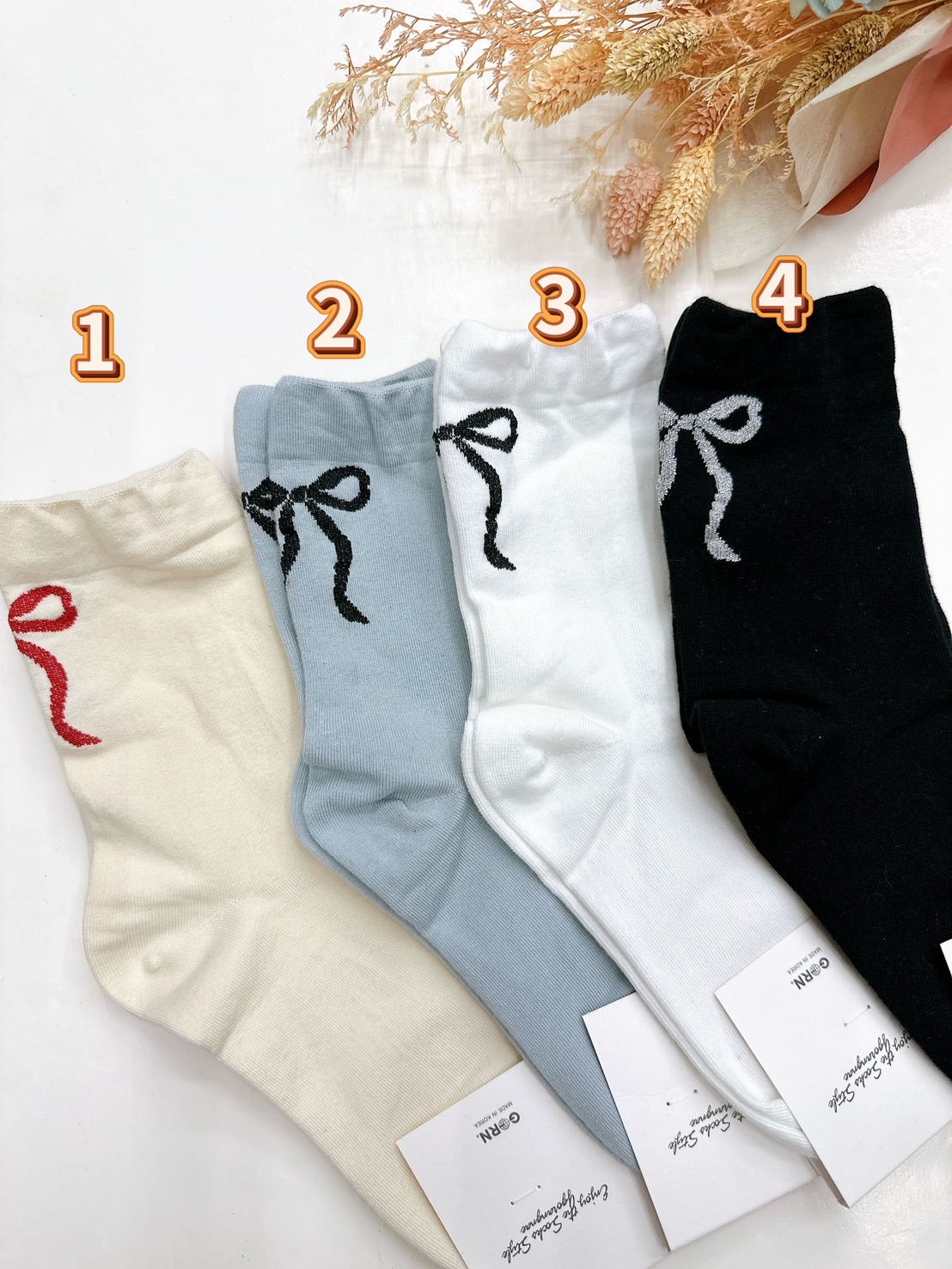 韓國製造~腳後跟緞帶蝴蝶結 二分之一襪