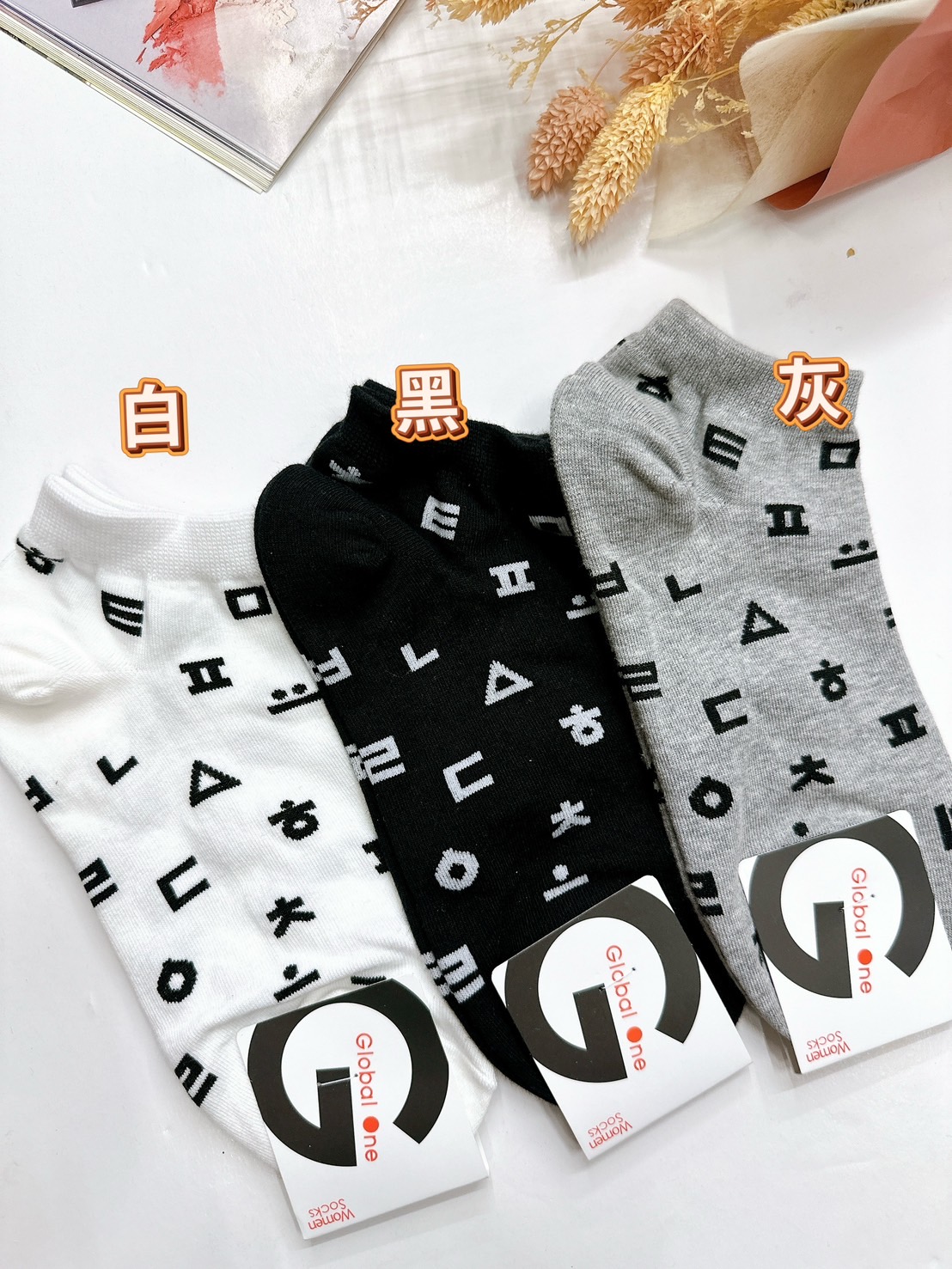 韓國製造~圖形符號 短襪