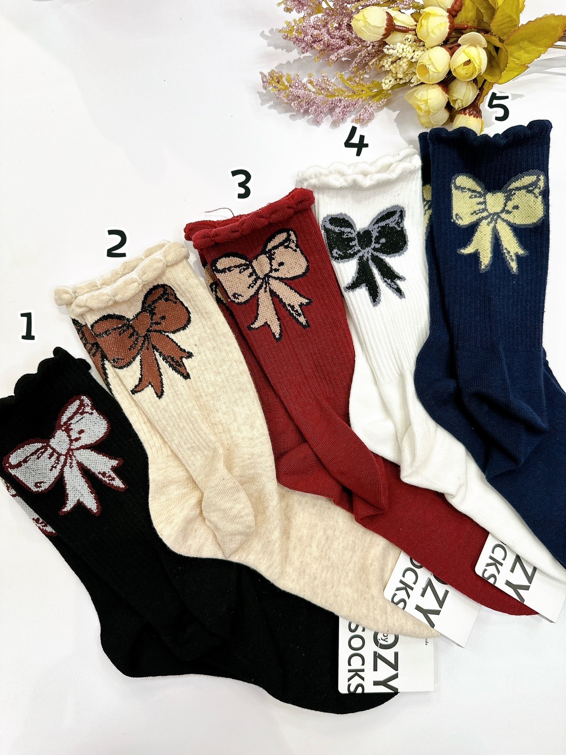 韓國製造~花邊蝴蝶結微浮愛心 二分之一襪