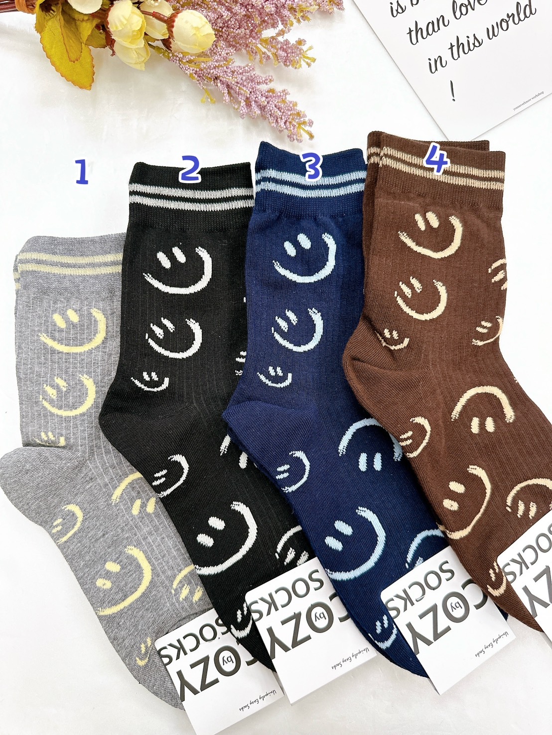 韓國製造~後跟太陽花笑臉 二分之一襪