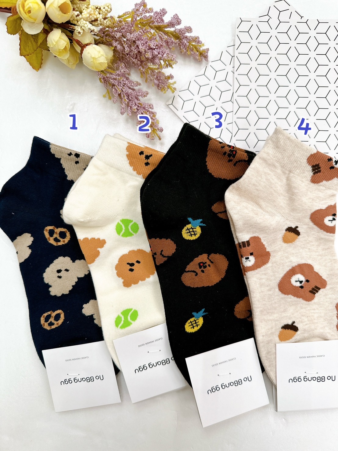 韓國製造~紅蝴蝶結小坐熊 二分之一襪