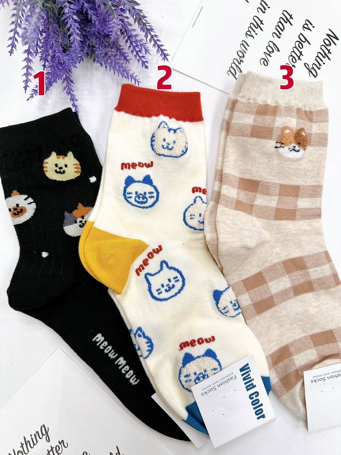 韓國製造~襪口蝴蝶結動物頭 二分之一襪