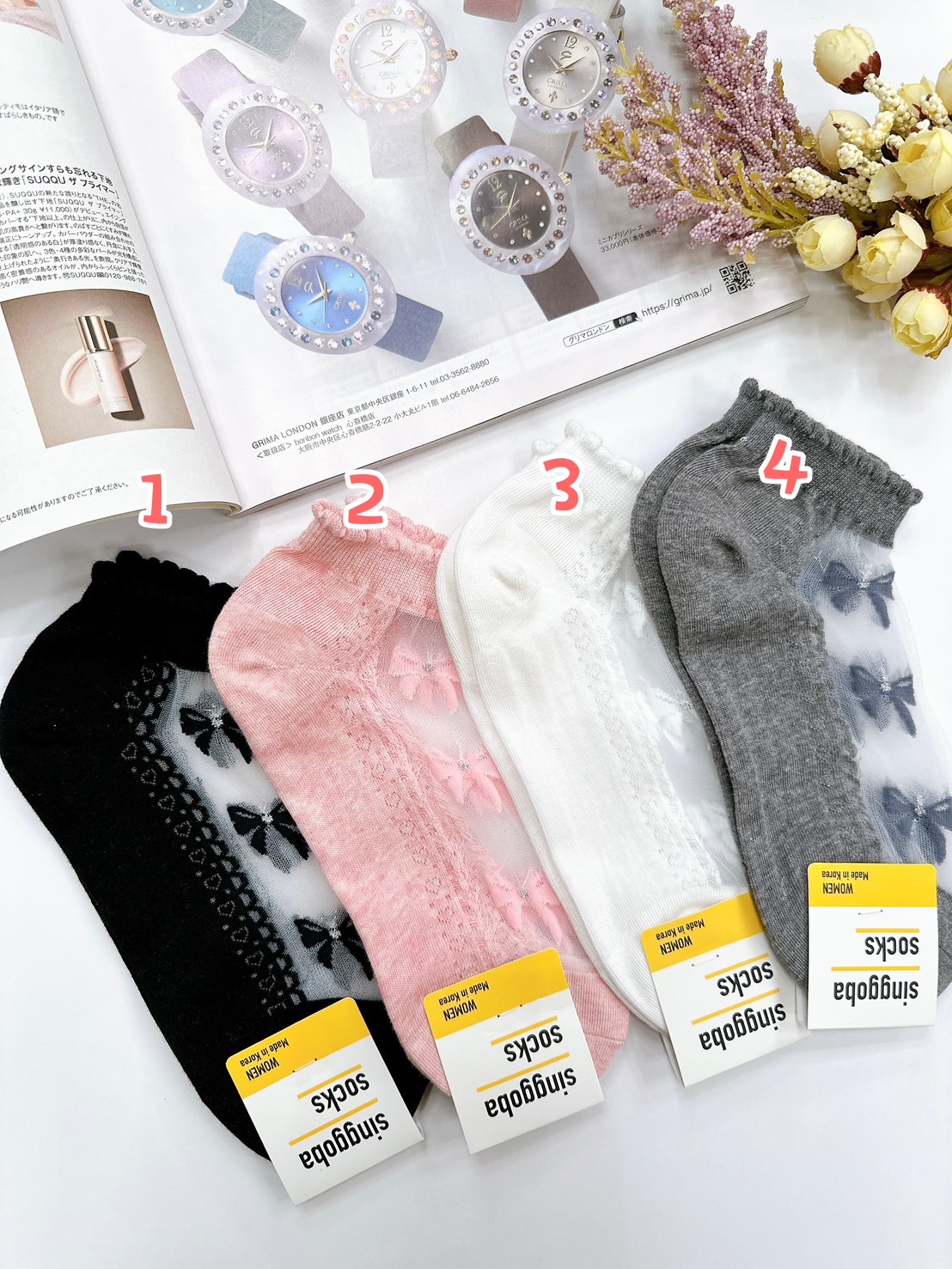 韓國製造~直條壓紋蝴蝶結 二分之一襪