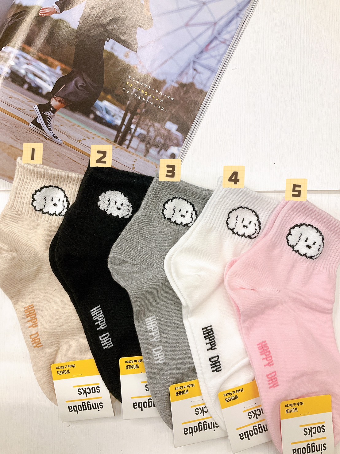 韓國製造~粉彩襪頭條紋笑臉 二分之一襪