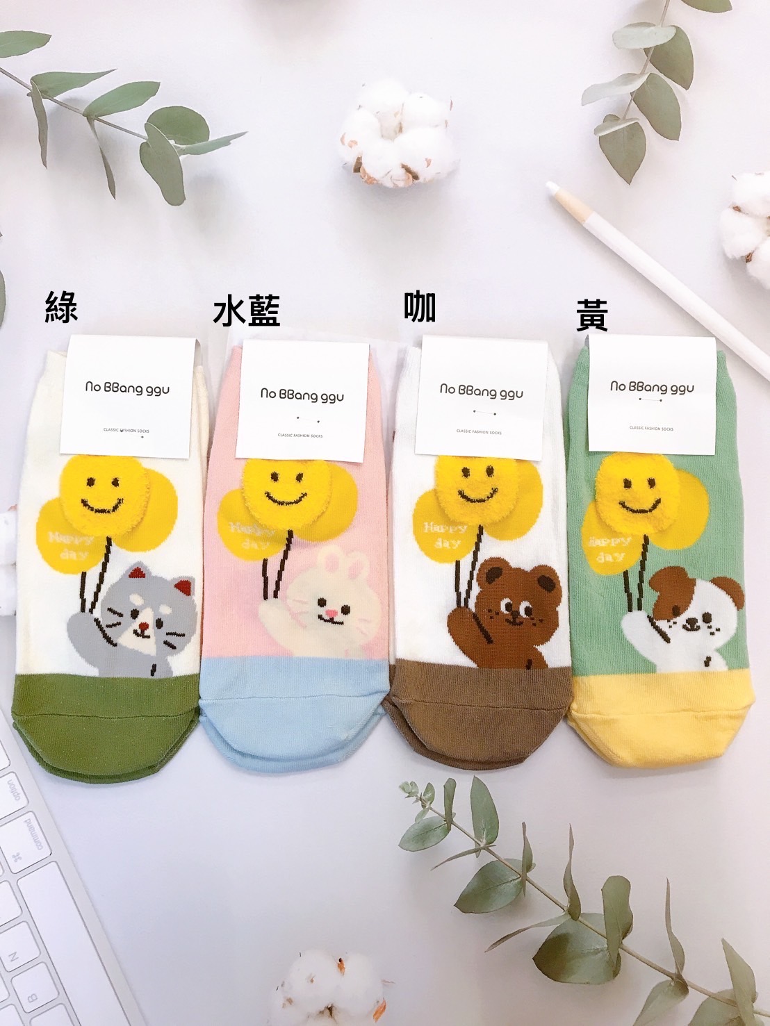 韓國製造~笑臉愛心幸運草 二分之一襪