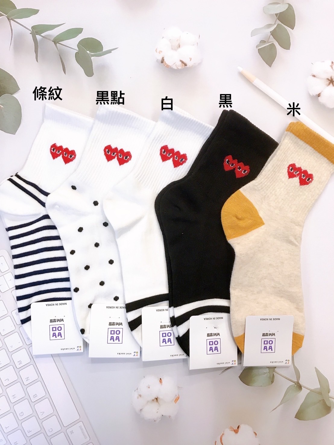 韓國製造~捲邊不束腳小愛心 二分之一襪