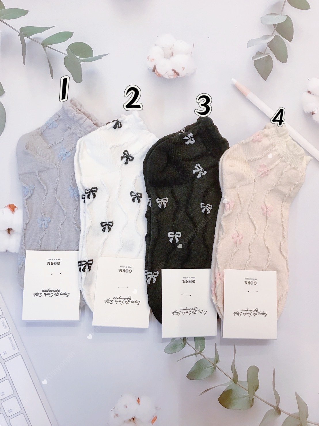 韓國製造~壓紋滿版蝴蝶結 短襪
