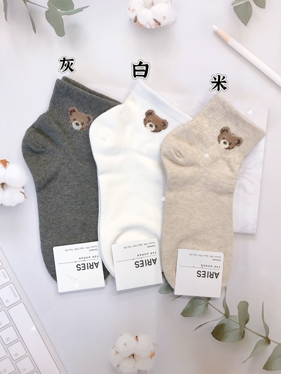 韓國製造~可愛熊浮雕愛心 二分之一襪