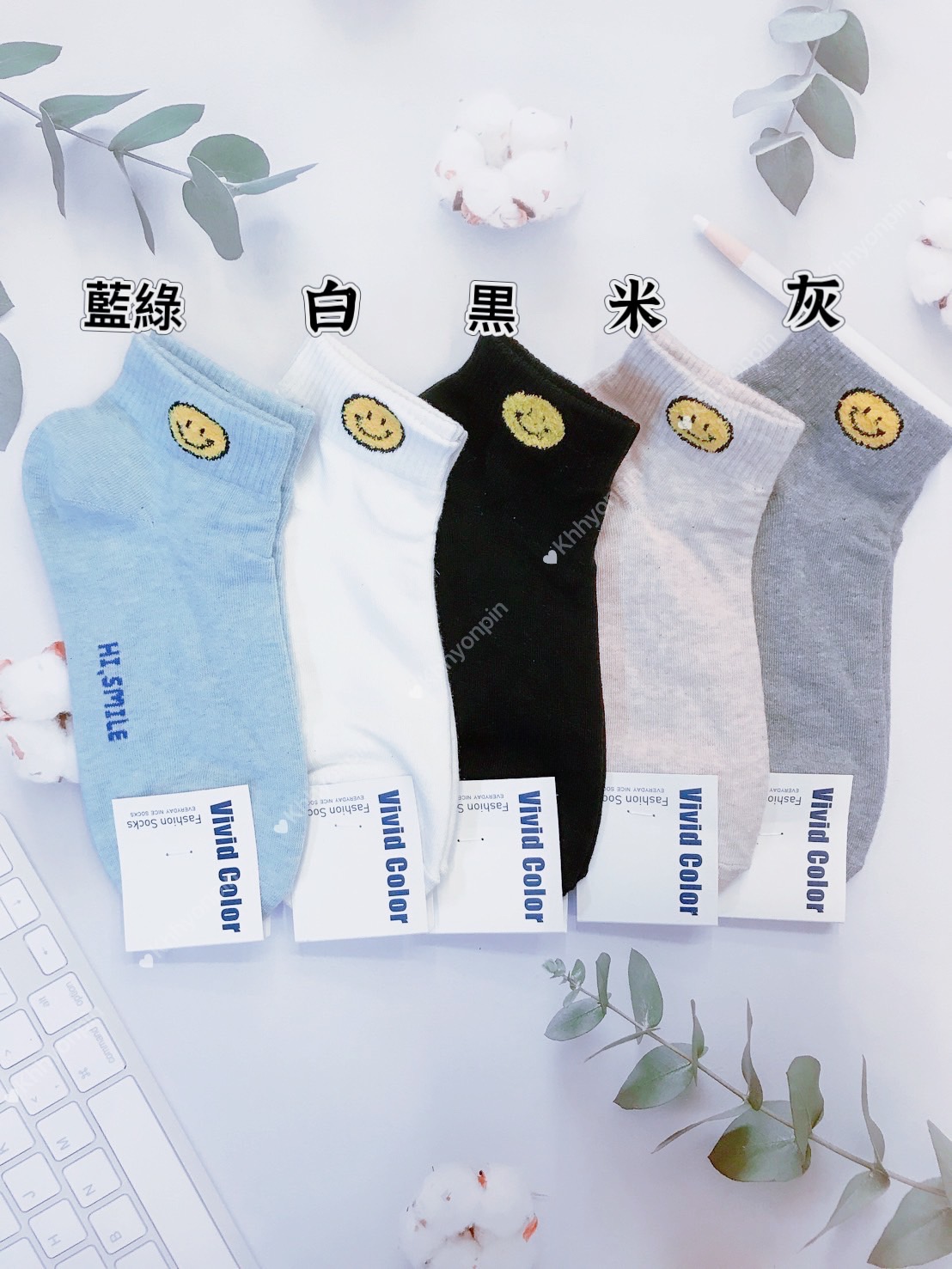 韓國製造~彩色隱形笑臉 二分之一襪