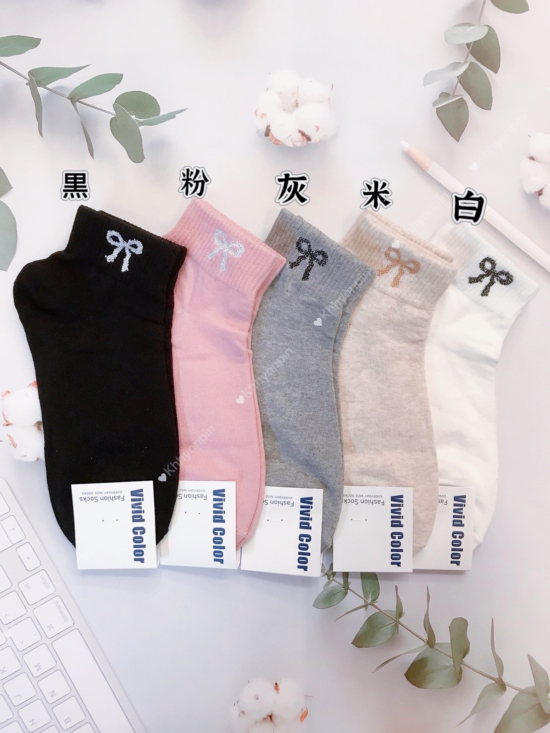 韓國製造~膚排列彩色蝴蝶結 短襪