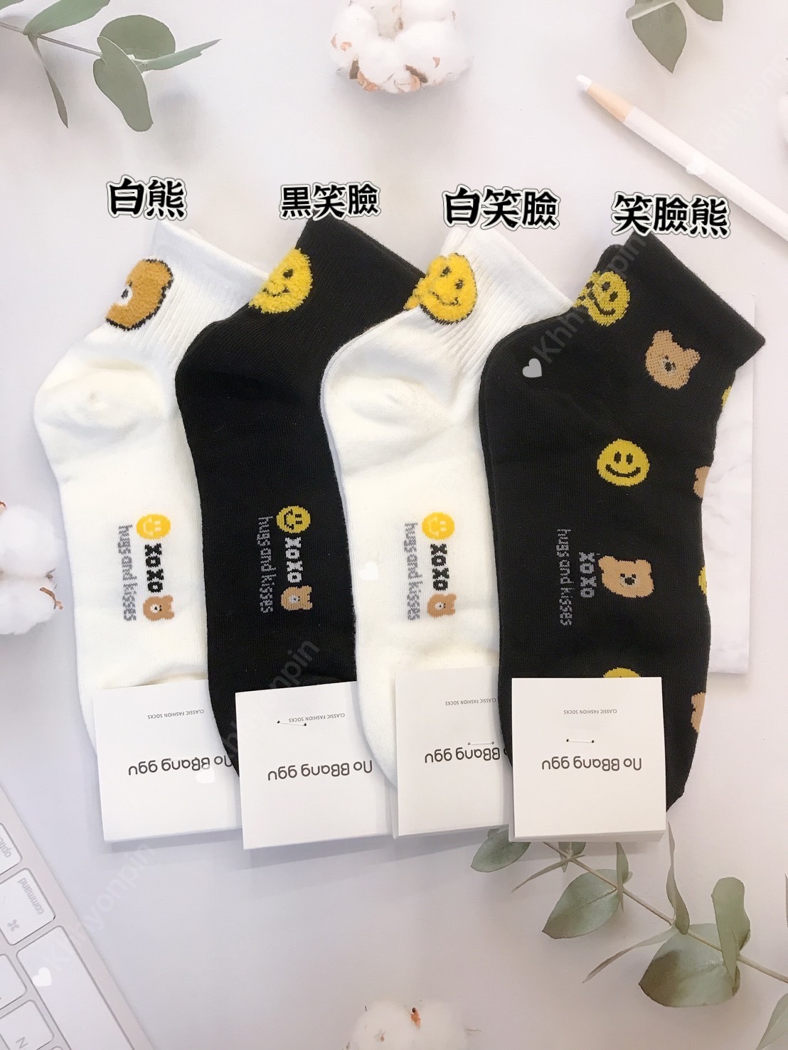 韓國製造~後跟笑臉熊 短襪