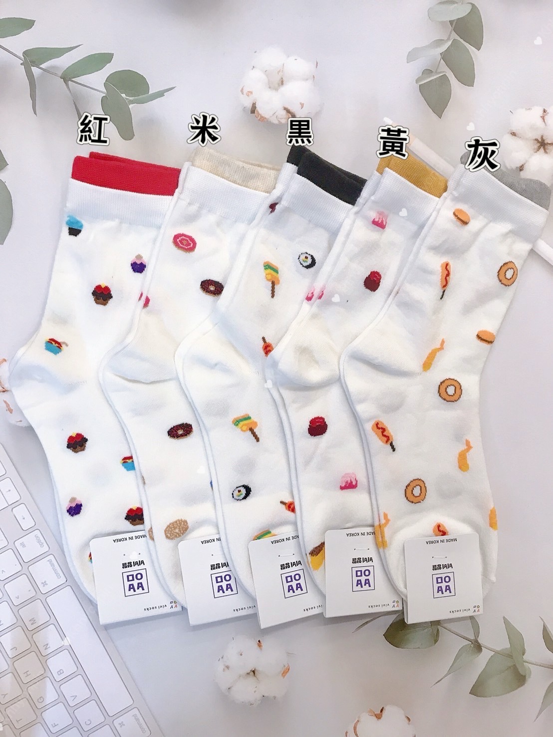 韓國製造~雙色襪頭笑臉 二分之一襪