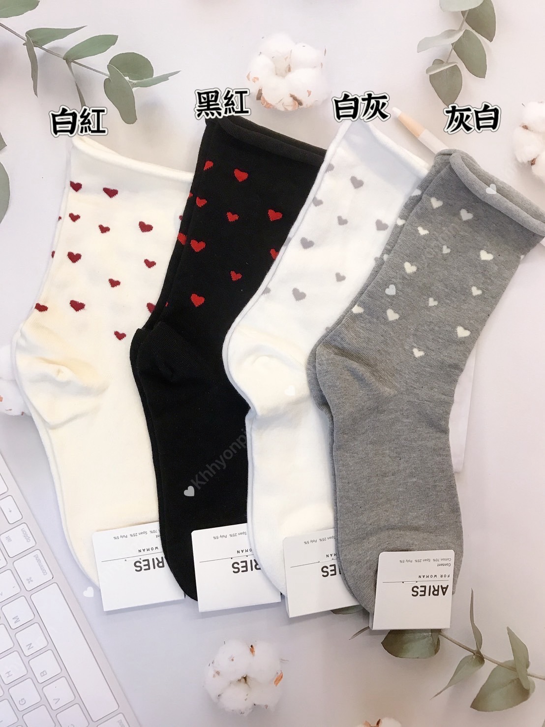 韓國製造~截小愛心捲邊 二分之一襪