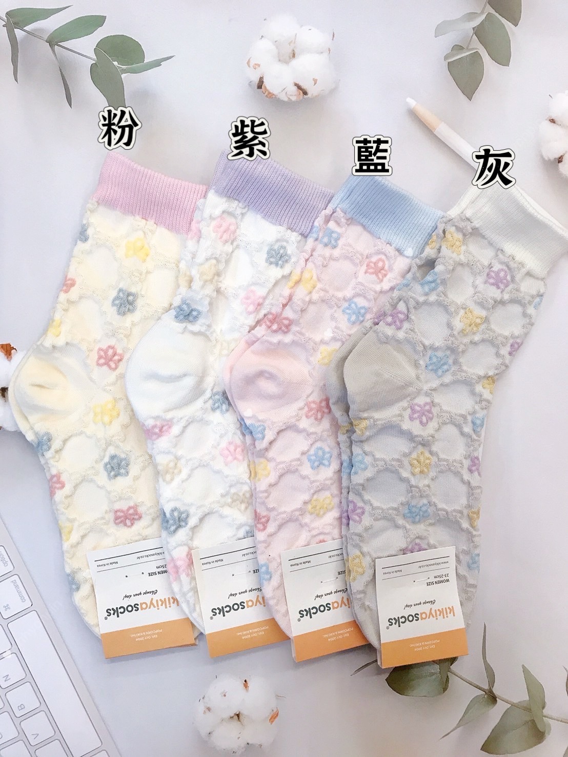 韓國製造~襪口滾色小蝴蝶結 二分之一襪