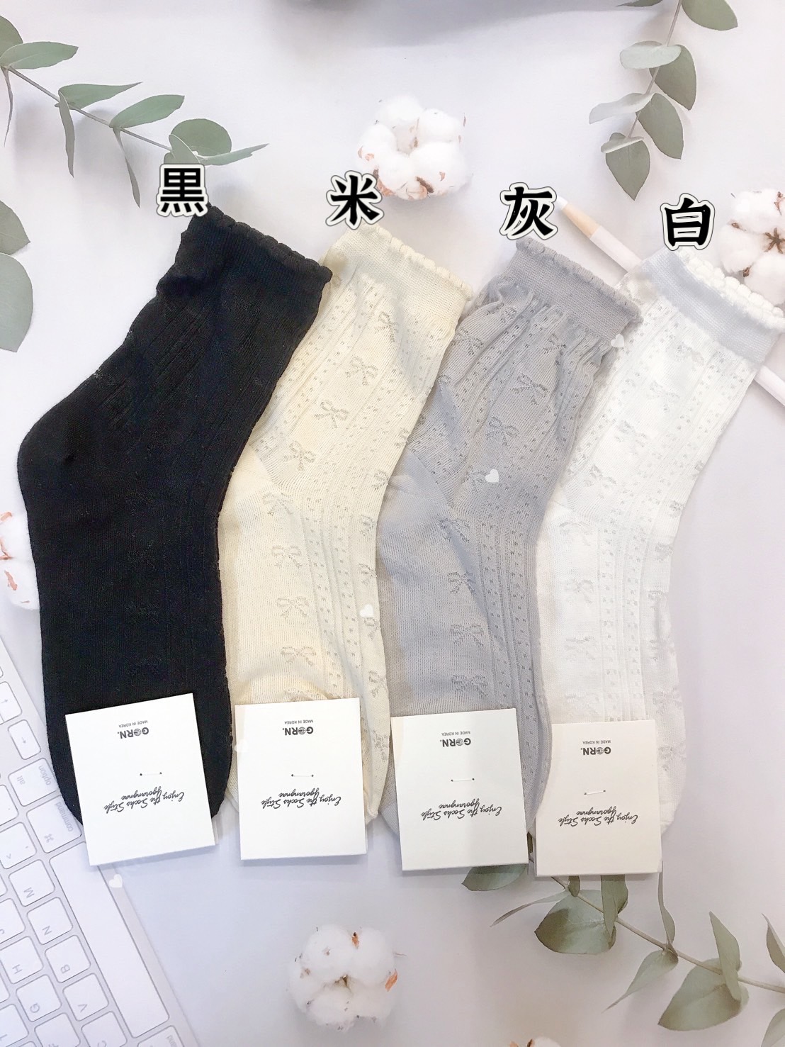 韓國製造~滿版蝴蝶結泡泡邊 二分之一襪