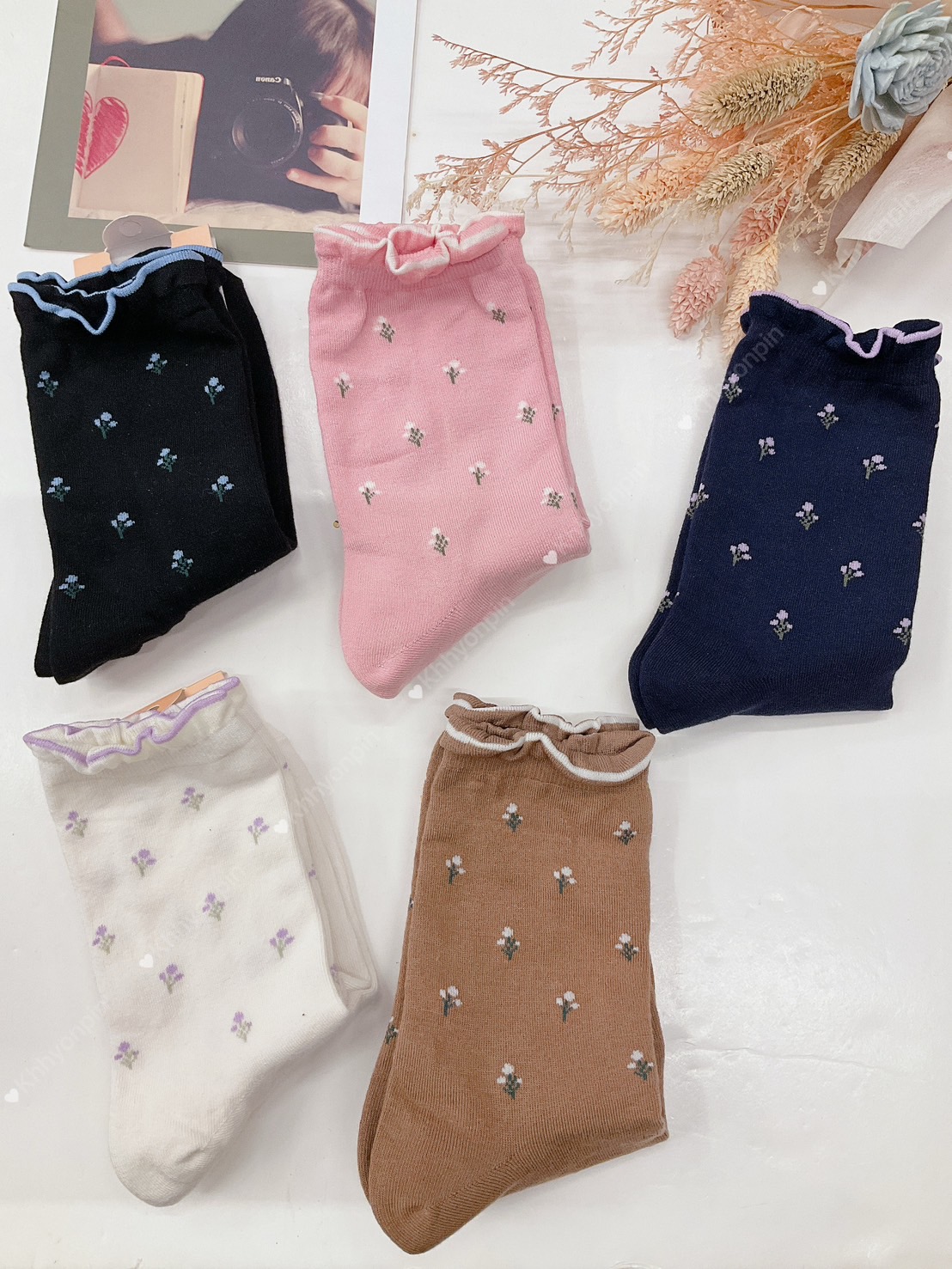 韓國製造~滿版小花 短襪