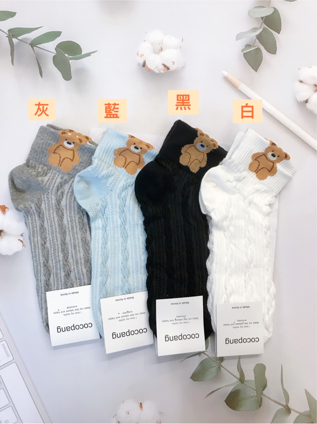 韓國製造~立體小熊藤花 二分之一襪