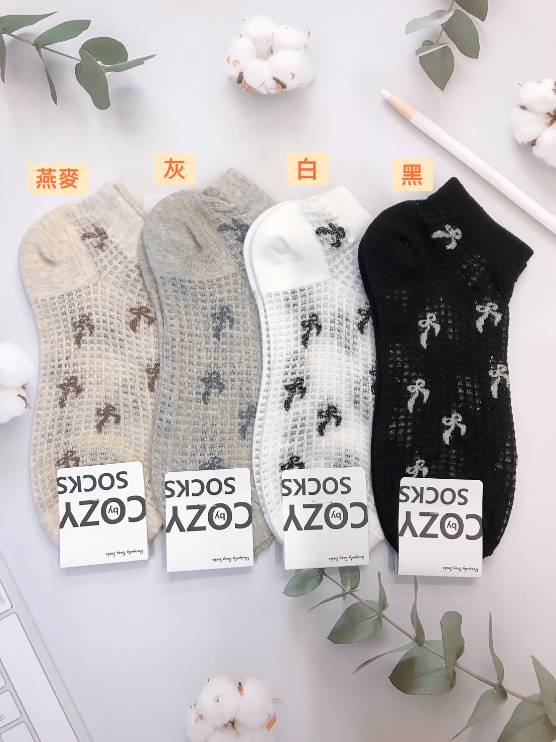 韓國製造~蛋糕邊排列蝴蝶結 二分之一襪