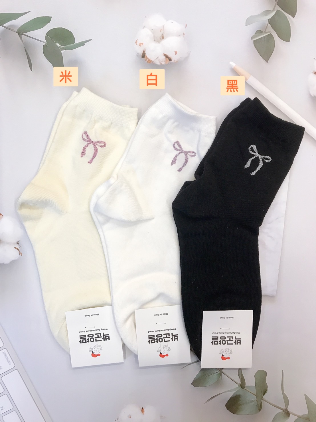 韓國製造~黑白配色蝴蝶結 二分之一襪