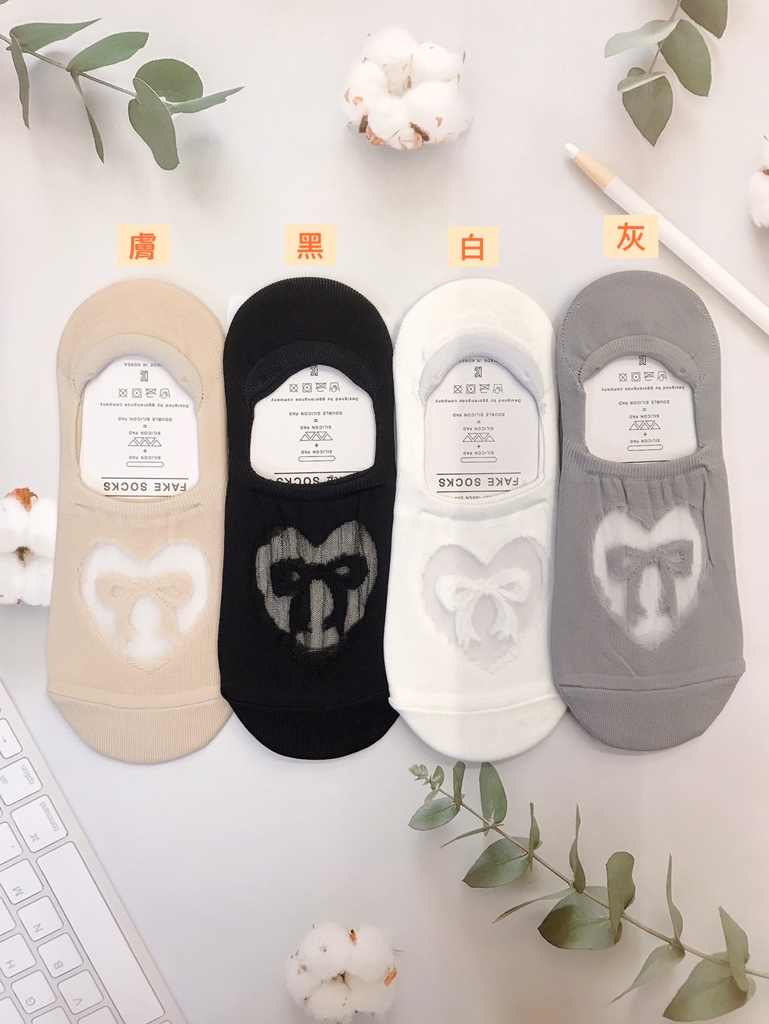 韓國製造~愛心透明蝴蝶結 隱形襪