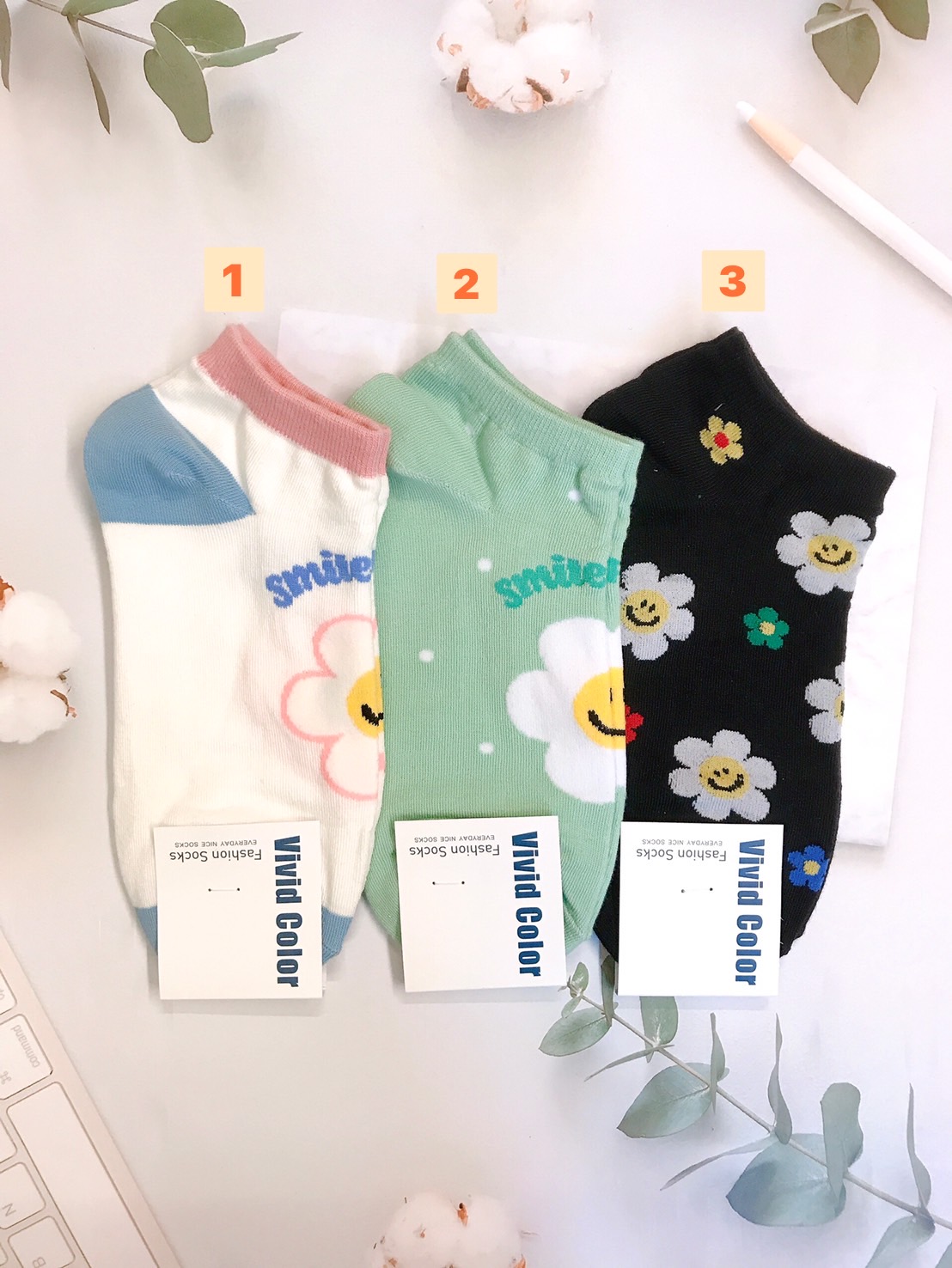 韓國製造~笑臉花朵 短襪